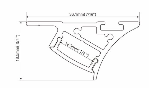 The profile #60 comes with a PMMA cover. Length: 3000 mm, 118 1/8". Height: 18.5 mm, 3/4". Largeur: 18.5 mm, 3/4". Interior width: 11.9 mm, 1/2". Protects the LED strip and dissipates heat from the LED strip for a longer life. Other items used with the profile #60: TT-60-END (end cap) & TT-60-CLIP (installation clip) Choice of diffuser matt opal PMMA, clear PMMA, black PMMA, PC diffuser. Sold per foot.