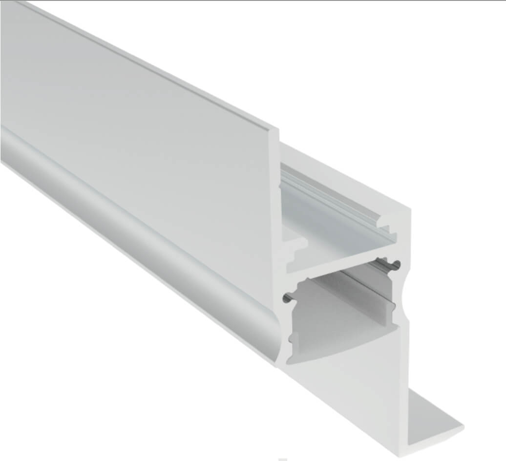 White-finish aluminum extrusion designed for the insertion of an LED strip.