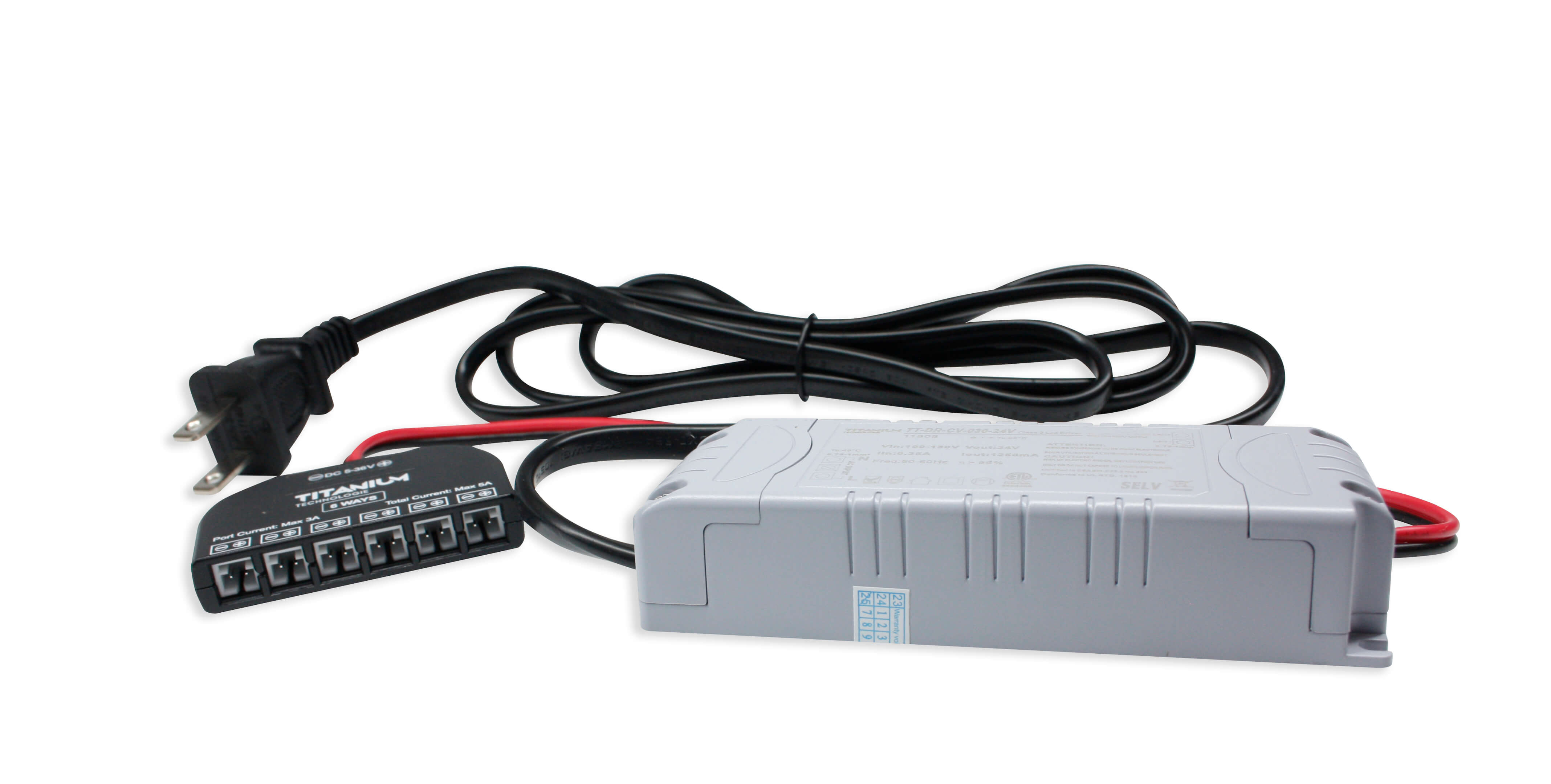 Transfo. gradable 30w, Entrée fiche mâle 120v, Sortie 24Vdc connect. Dupont