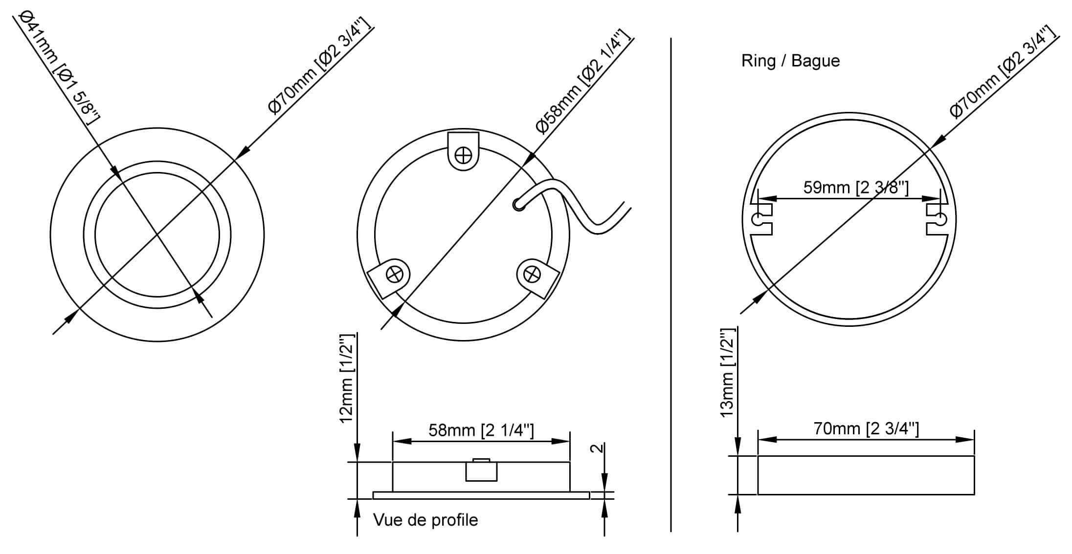 Puck 3w fini nickel brossé 12vDC CCT sélectable 3000K et 4000K