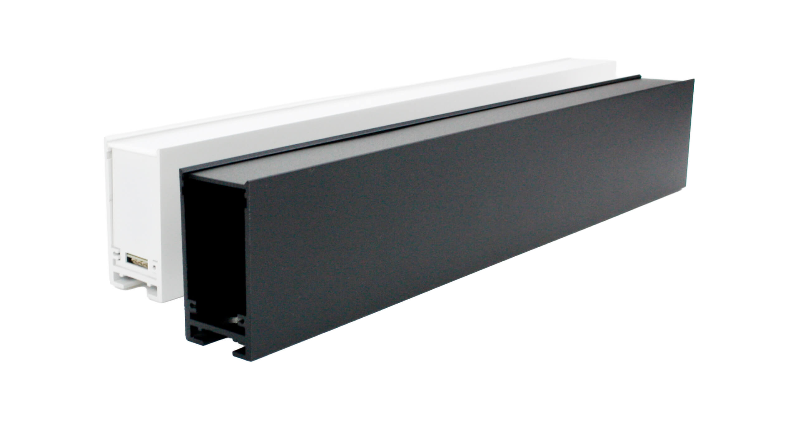 Boîtier de connexion pour installer le transformateur au début de l’assemblage. Conçu pour être utilisé avec le transformateur TT-DR-CV-150-24V-BOX-TRK. Dimension 76 x 40 x 441 mm. Dimension 3'' x 1''9/16 x 17''3/8.
