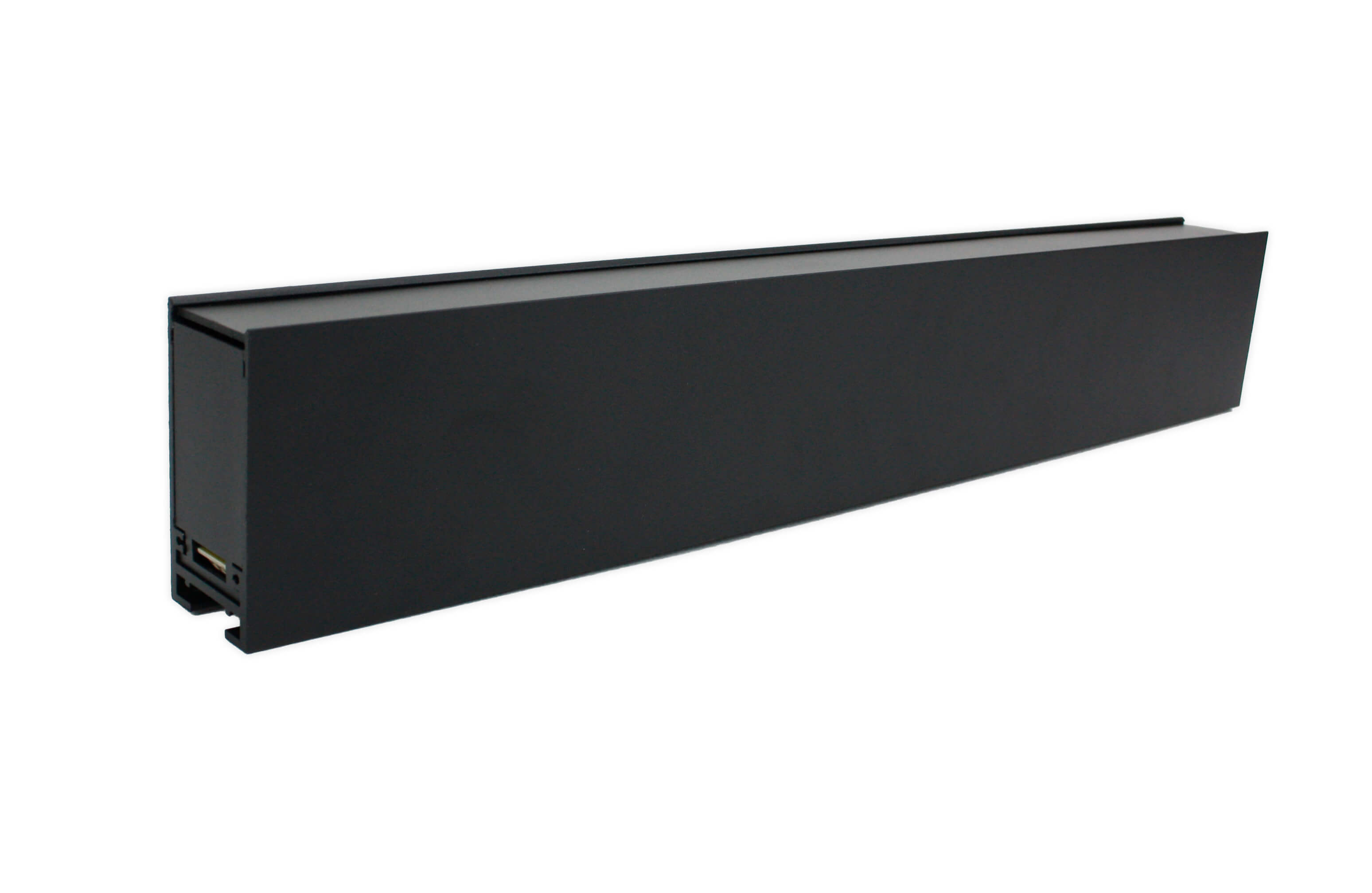 Boîtier de connexion pour installer le transformateur au centre de l’assemblage. Conçu pour être utilisé avec le transformateur TT-DR-CV-150-24V-BOX-TRK. Dimension: 76 x 40 x 470 mm. Dimension: 3" x 1"9/16 x 18"1/2. Fini noir.